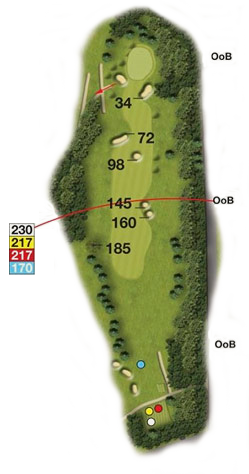 “Par 4, The drive needs to be to the left, both to avoid the fairway bunkers and the two new bunkers placed tight to the right edge of the fairway.”